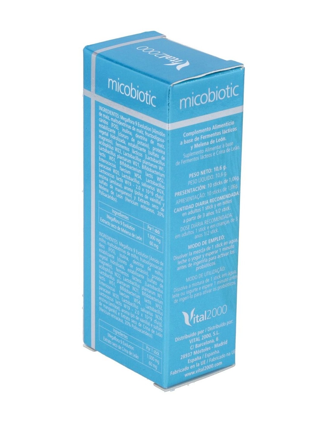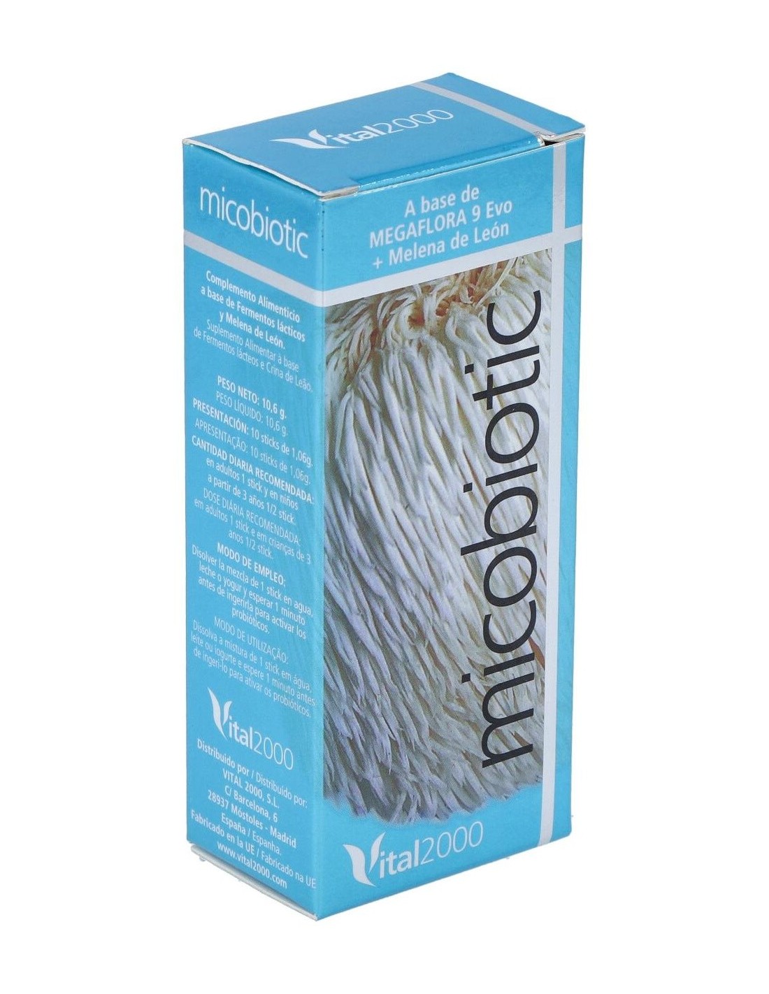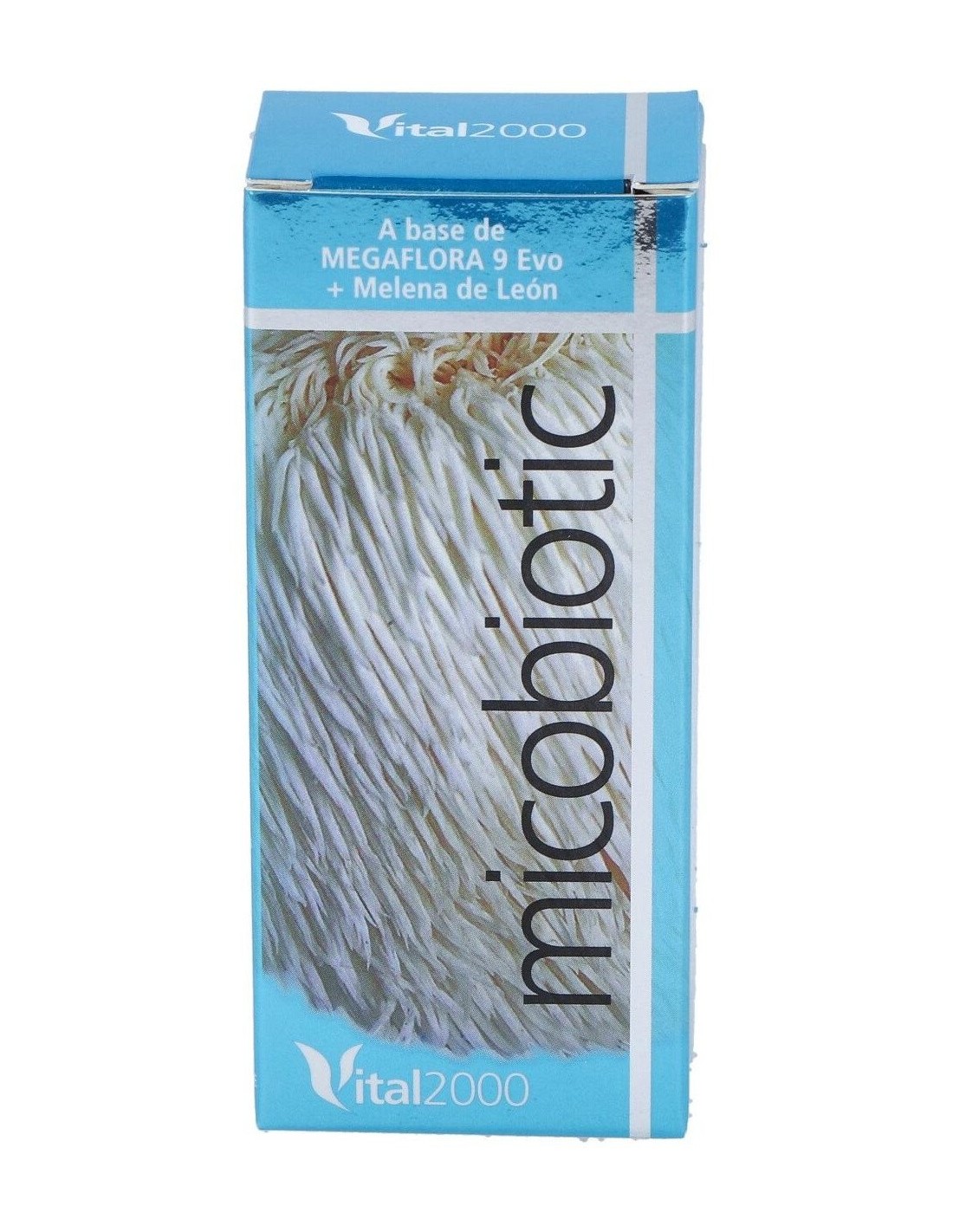 60 mg de melena de león (Hericium erinaceus) (20% en polisacáridos). 1.000 mg de megaflora 9 evo® (aporta 2000 millones ufc/g) (Lactobacillus acidophilus W22, Lactobacillus plantarum W1, Lactobacillus plantarum W21, Bifidobacterium lactis W51, Bifidobacterium lactis W52, Enterococcus faecium W54, Lactobacillus paracasei W20, Lactobacillus salivarius W24, Lactococcus lactis W19). Complejo prebiótico (matriz orgánica y mineral) con tecnología ProbioAct®: que garantiza una supervivencia y actividad superior al 90%: Almidón de maíz, maltodextrinas de maíz, fructooligosacáridos (FOS), inulina, dextrina de maíz, estabilizante (cloruro de potasio), proteína vegetal hidrolizada, estabilizante (sulfato de magnesio), enzima (amilasa), aroma (polvo de vainilla) y sulfato de manganeso.