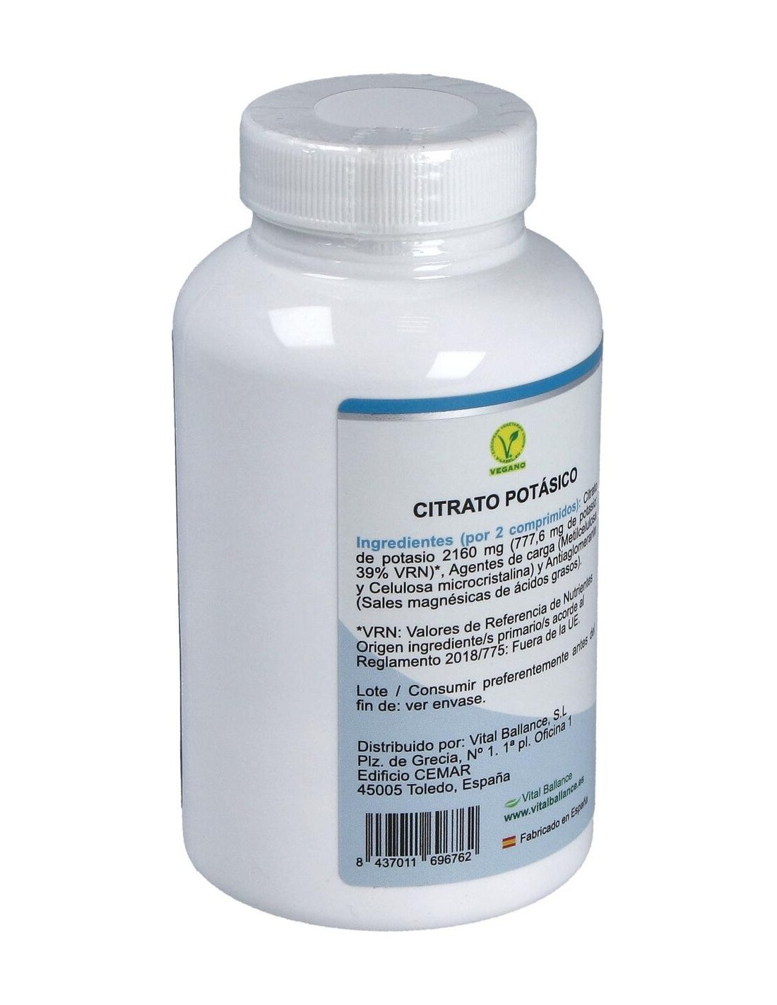 Citrato de potasio, Agentes de carga (Metilcelulosa y Celulosa microcristalina) y Antiaglomerante (Sales magnésicas de ácidos grasos).