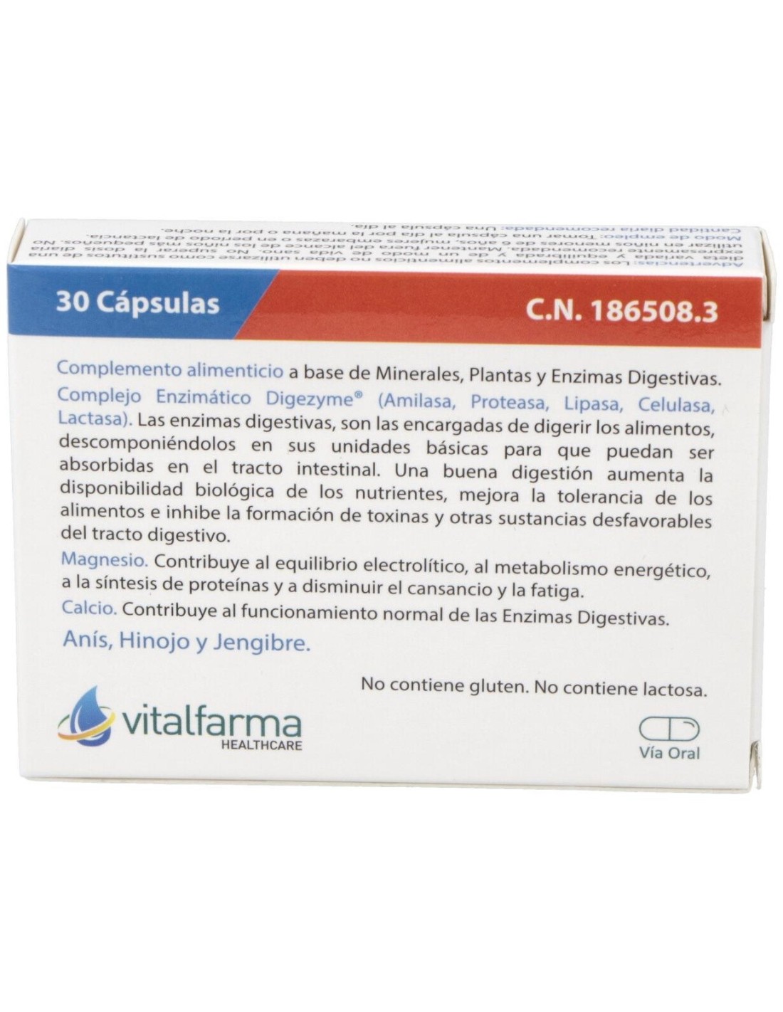Complejo enzimático con plantas y minerales. El magnesio y el calcio contribuyen al funcionamiento normal de las enzimas digestivas.