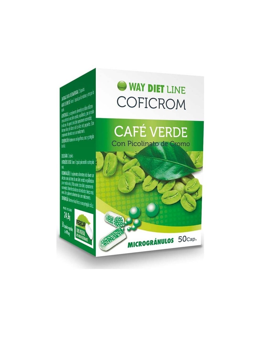 Complemento alimenticio a base de café verde y picolinato de cromo útil en dietas de adelgazamiento. Al ser con cafeína, se deben tener en cuenta los efectos de la aceleración del ritmo cardiaco. En personas con cardiopatías se debe controlar su consumo. No se recomienda en embarazadas, pacientes renales o niños pequeños. Apto para veganos. Sin gluten. Sin OMG.
