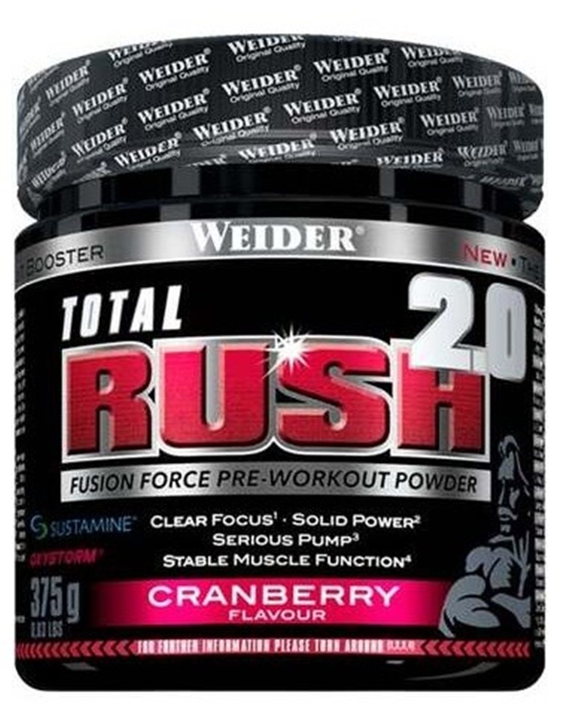 WEIDERTotal Rush 2.0 contiene una combinación de vitaminas y minerales para apoyar las funciones musculares y cognitivas de los deportistas durante sus entrenamientos: vitamina D, ácido Ascórbico, niacina, vitamina B6, B12, calcio y zinc. La niacina ayuda a reducir la fatiga y el cansancio (niacina). La Vitamina B6 contribuye a una función normal del sistema nervioso y una función intelectual normal. La vitamina B12 ayuda a un metabolismo energético normal. La vitamina D contribuye a mantener un funcionamiento muscular normal. El calcio ayuda a una función muscular normal.