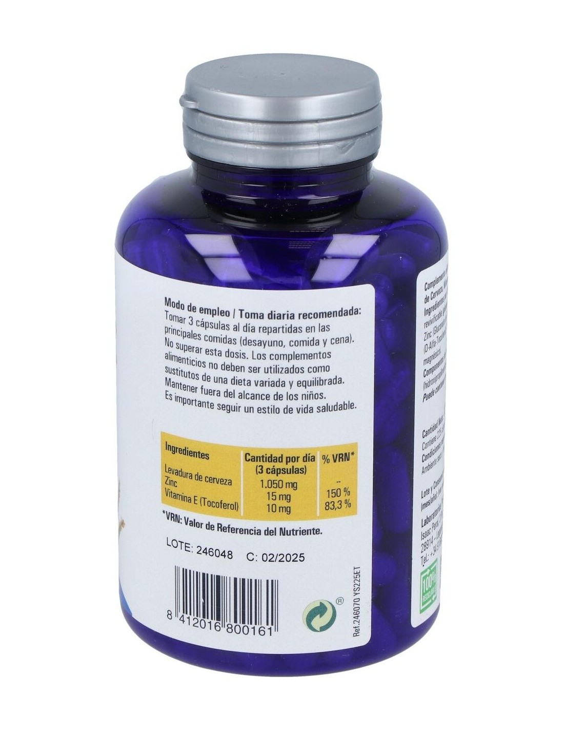 LEVADURA DE CERVEZA REVIVIFICABLE (350 MG). GLUCONATO DE ZINC (5 MG). VITAMINA E (2,7 MG).