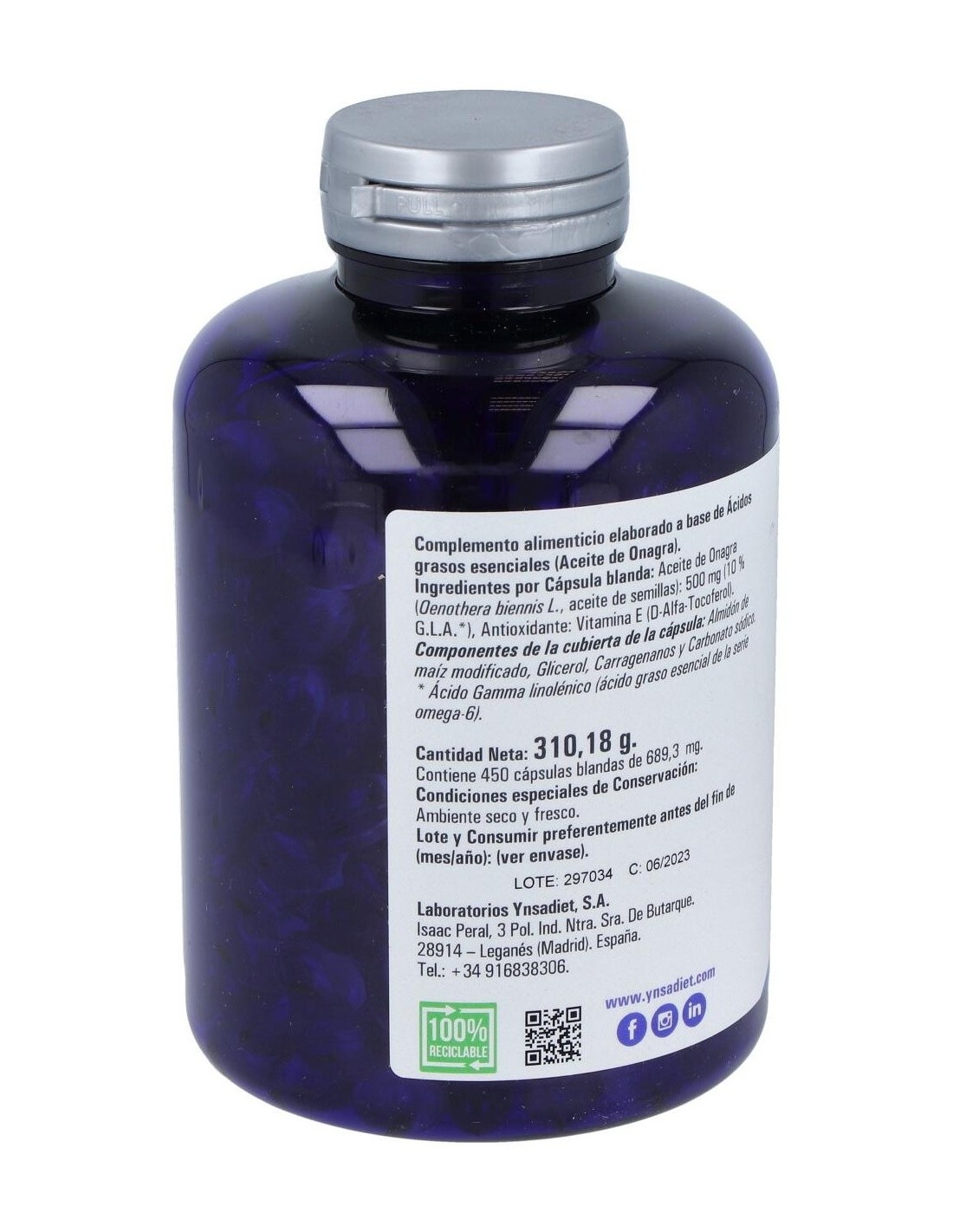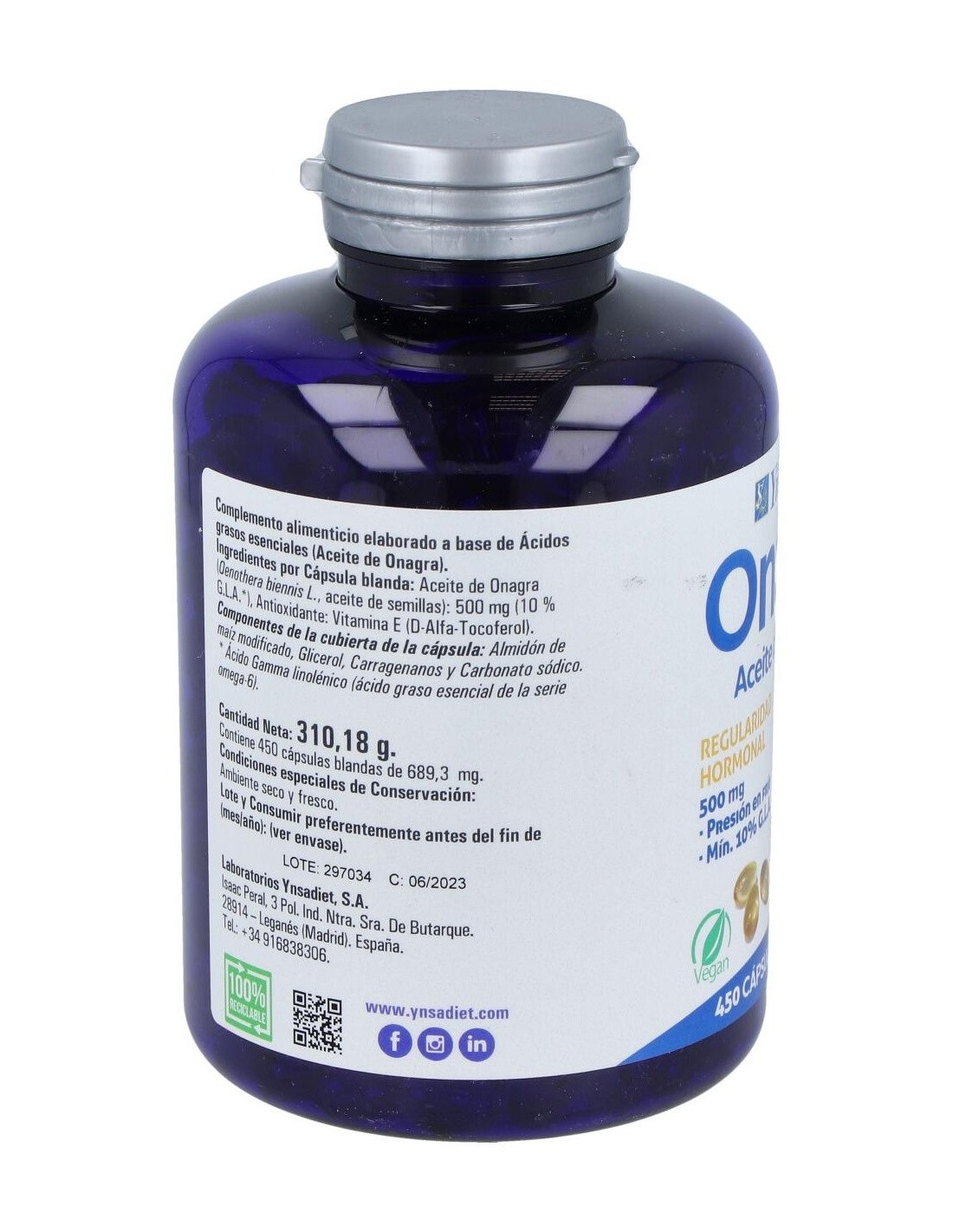 Ynsadiet onagra vegetal es un complemento alimenticio rico en el ácido graso esencial omega-6 que contribuye a sintetizar las prostaglandinas, que ayudan a regular la menstruación femenina y a normalizar los niveles de colesterol.