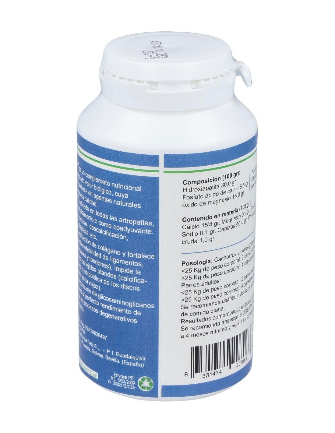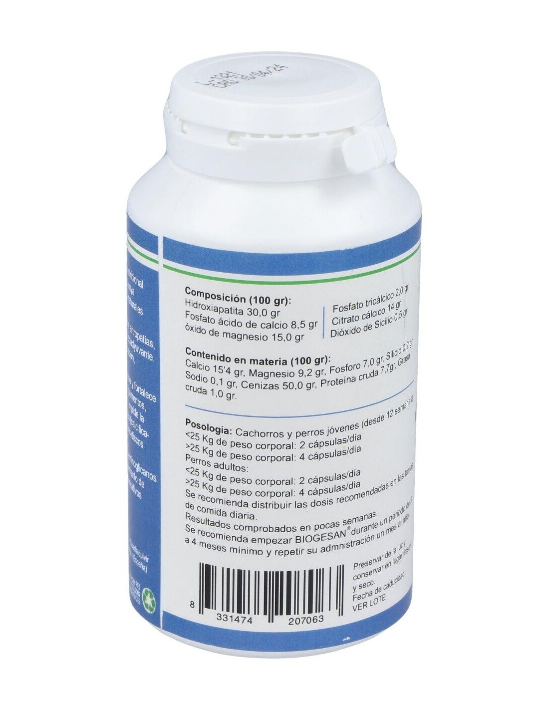 Está constituido por una base de proteínas colágenas, no colágenas y complementos vitamínicos-minerales, además de oligoelementos. El agente activo de BIOGESAN, es un concentrado de hidroxiapatita de microcristal [ 3Ca 3(Po 4)2 Ca (OH)2], que da soporte nutricional en el mantenimiento de los huesos en condiciones normales.